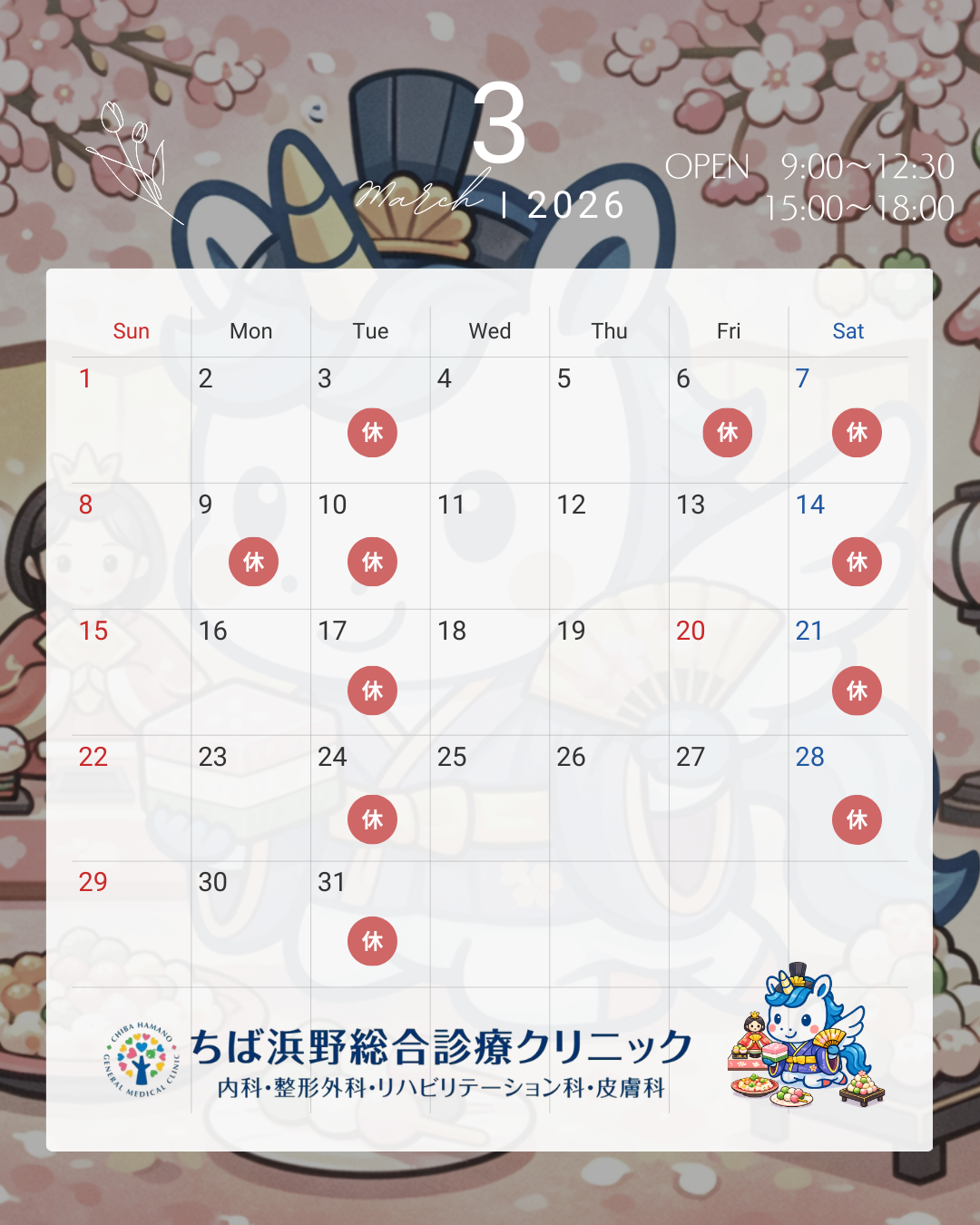 【3月診療カレンダーのお知らせ】